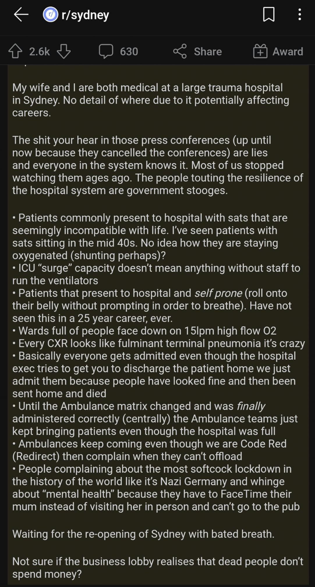 Dr Bec Szabo On Twitter This Was Shared By Someone On Facebook From Reddit A Healthcare Worker S Perspective Of Working The Frontline On Sydney Please Read The Entire Thing Covid19nsw Https T Co Bbmv2stsgf